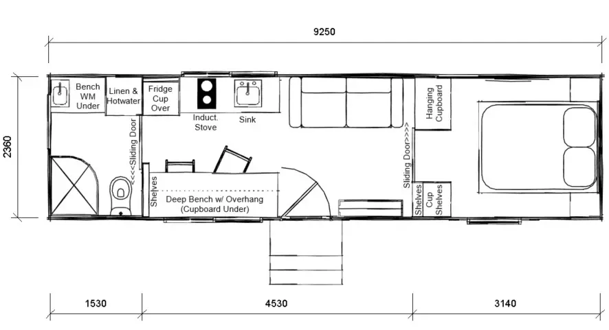 Living in a Tiny House doesn't mean that you stop existing. The PIVOT has everything to facilitate life. Robes for the bedroom, extra storage in the kitchen and bathroom. All the internal walls and cupboards can be finished in a myriad of colours and textures to reflect you. There is no losing yourself to accept a predetermined style. It is meant to be about you and your space not just about looking good for social media